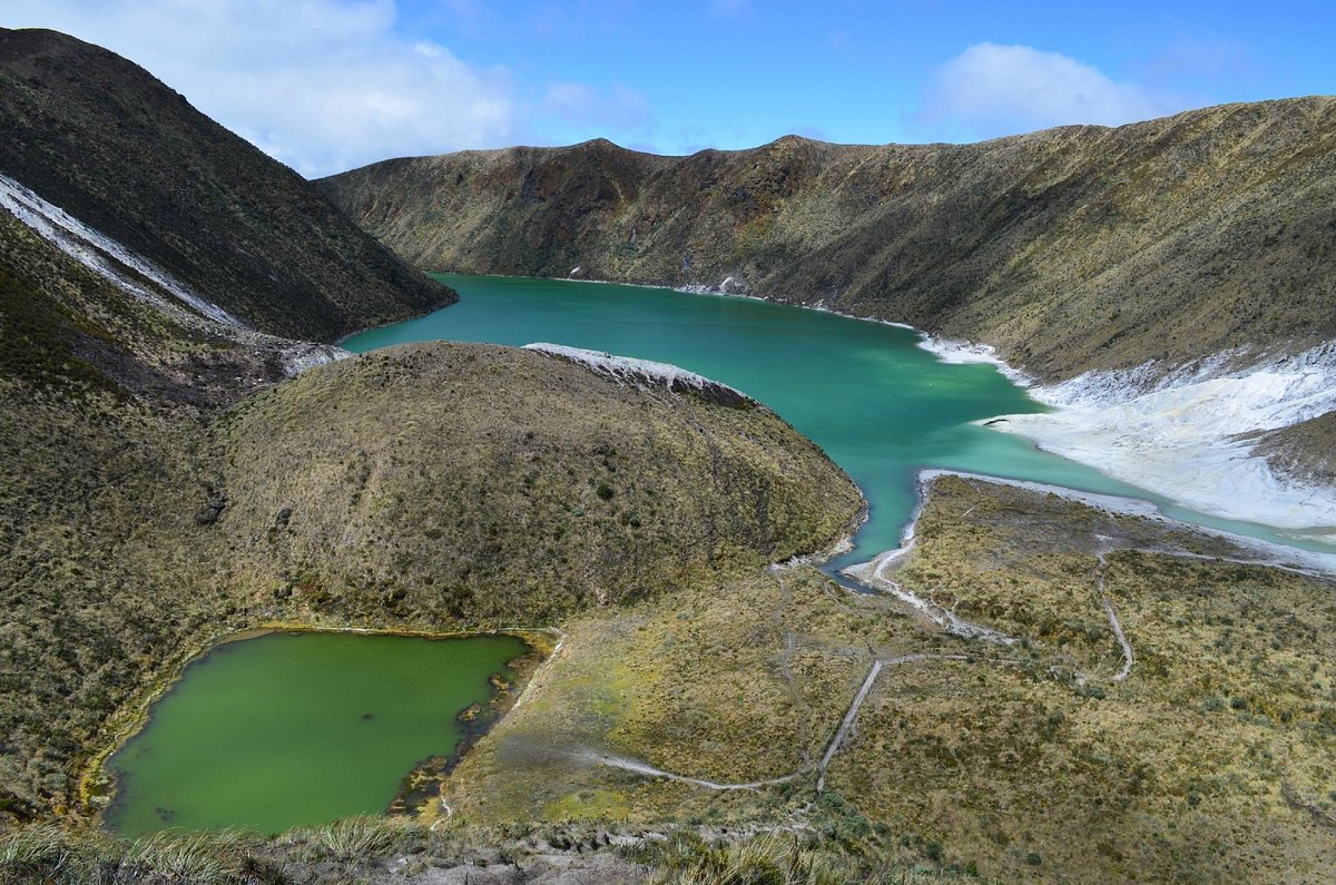 Una verdadera maravilla natural, situada en el municipio de Tuquerres a 72 km de Pasto. Dos lagunas lo acompañan, color Esmeralda y negra, junto con su contraste playa blanca, recrean una mágica obra de singular belleza ubicada en el cráter del volcán Azufral. Un ascenso de 4000 metros sobre el nivel del mar, el cual se hace necesario para encontrar paramos, los impresionantes cerros rocosos de Gualcalá, conocido como “el dedo de Dios” y el verde intenso de la selva que baja de la costa pacífica nariñense.